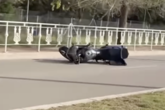 Several witnesses alerted 112 after seeing the rider fall from the bike and remain injured on the road.