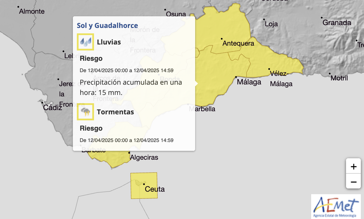 A series of weather alerts for heavy rainfall have been issued across Malaga and Cadiz provinces on Saturday.