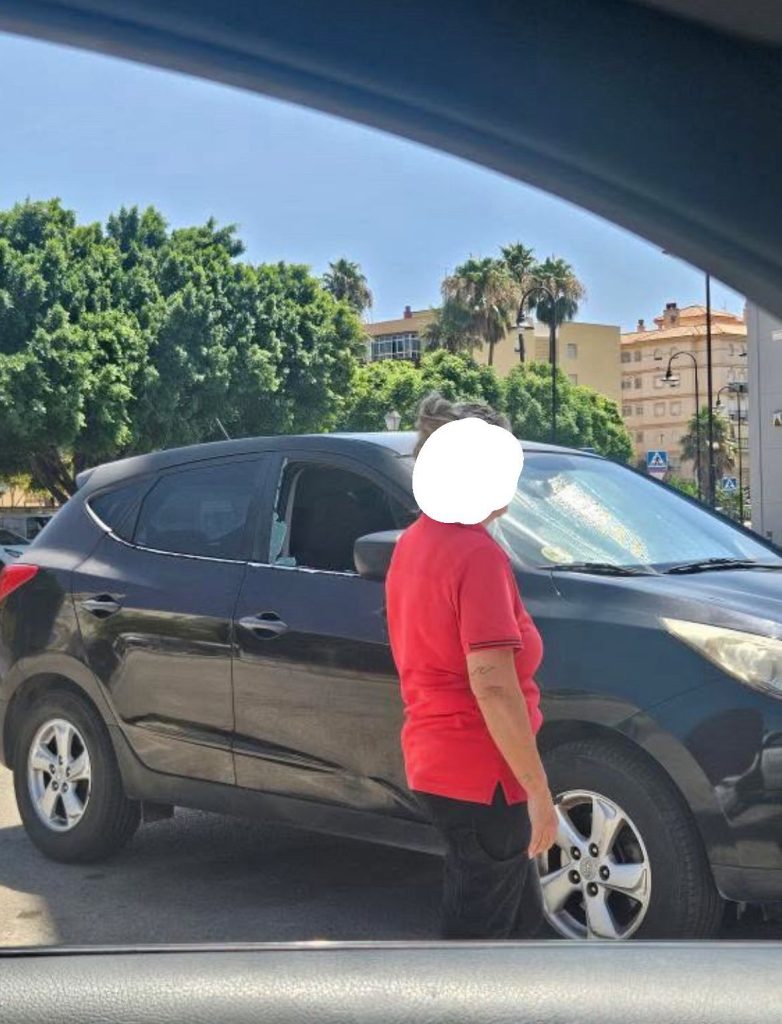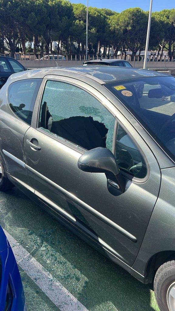 A photo uploaded by community page @fuengirolasequeja showed a black 4×4 with its passenger window destroyed.