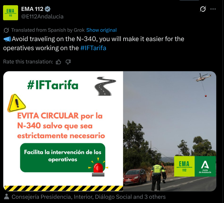 It came after holidaymakers on Tarifa’s beaches shared footage while being evacuated, showing how the sky was turning black due to the smoke.