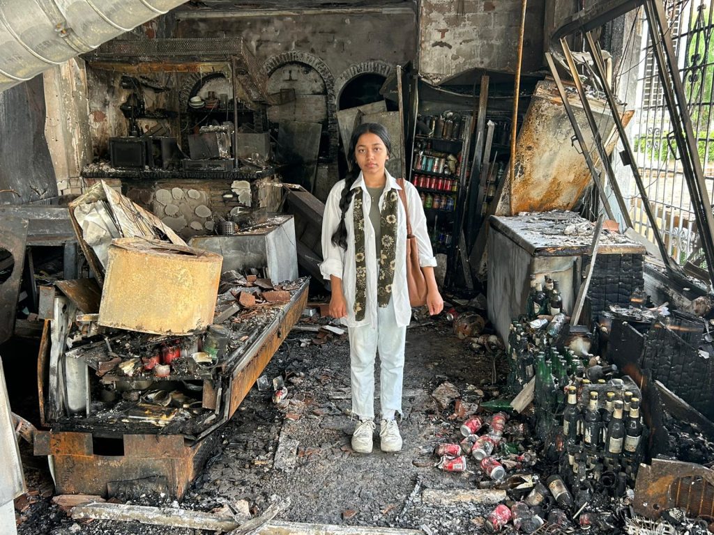 GUTTED: Young Taspia shows the Spanish Eye what is left of the kebab restaurant she bought just a month earlier (©theSpanishEye)