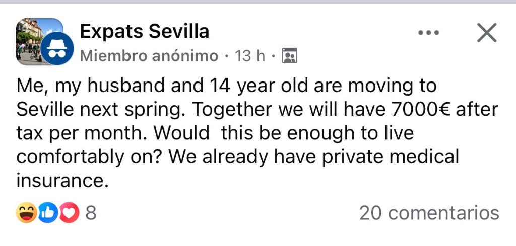 The poster wrote: ‘Me, my husband and 14-year-old are moving to Sevilla next spring.