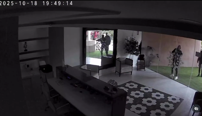 The footage, recorded on Saturday, October 18, shows masked and hooded man trying to force their way into a clinic in Magna Marbella.