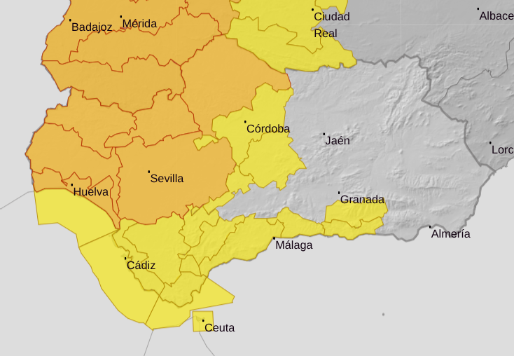 Weather alerts for Andalucia on Wednesday, with Huelva and Sevilla upgraded to orange