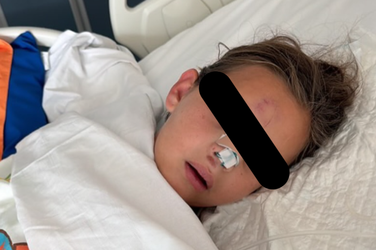 In a photo shared online, the girl can be seen tucked into a hospital bed recovering from a broken nose.