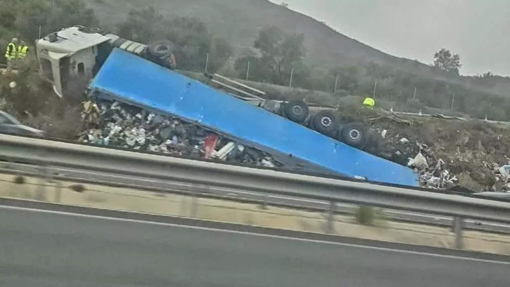 Lorry overturns on the AP-7 motorway near Torremolinos (Instagram/@marbellasequeja)