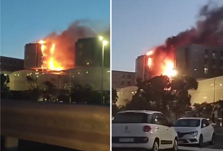 Reading: BREAKING: Chaos as fire engulfs hospital’s cladding in southern Spain forcing evacuation of cancer patients