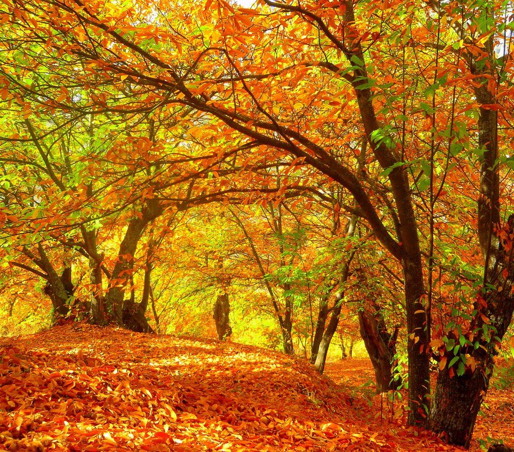 Thousands of chestnut trees blanket the slopes, turning entire mountainsides into shimmering waves of copper and amber.