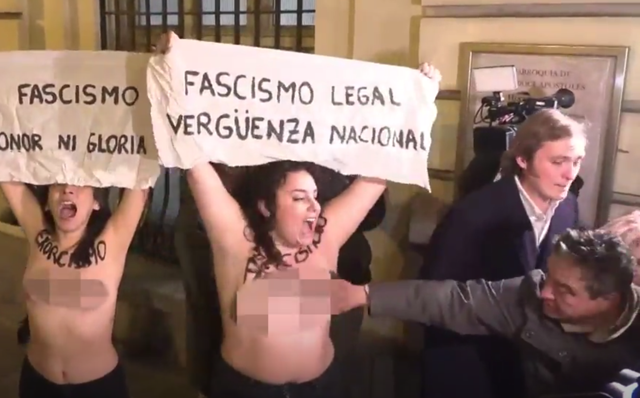 The Policia Nacional said the suspect is accused of sexually assaulting two FEMEN activists during a protest outside a packed Madrid church, where a mass in honour of Franco was being held.