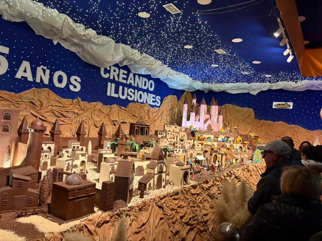 Created annually since 2000 by the family-run Galleros Artesanos, the display uses over 1,500 kilos of chocolate spread across 52 square metres, making it one of Andalucia’s most impressive edible artworks.