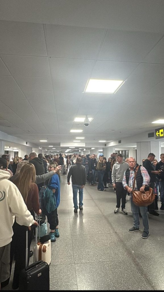 Chaotic scenes were pictured in the arrivals area, where passengers claimed they waited up to two hours after landing from the UK.