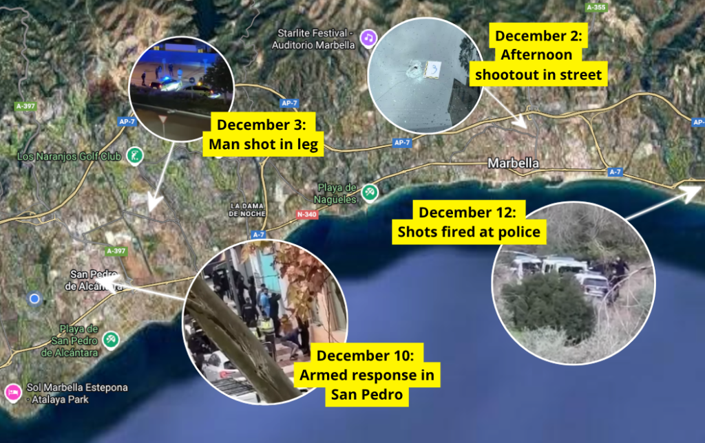 Finally, on December 12, a criminal gang allegedly shot at officers while making a getaway in eastern Marbella.
