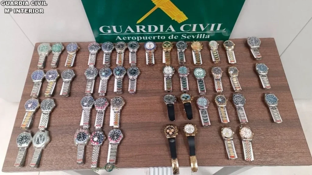 The Guardia Civil have detained a passenger at Sevilla Airport after discovering 47 counterfeit high-end watches inside his checked luggage.