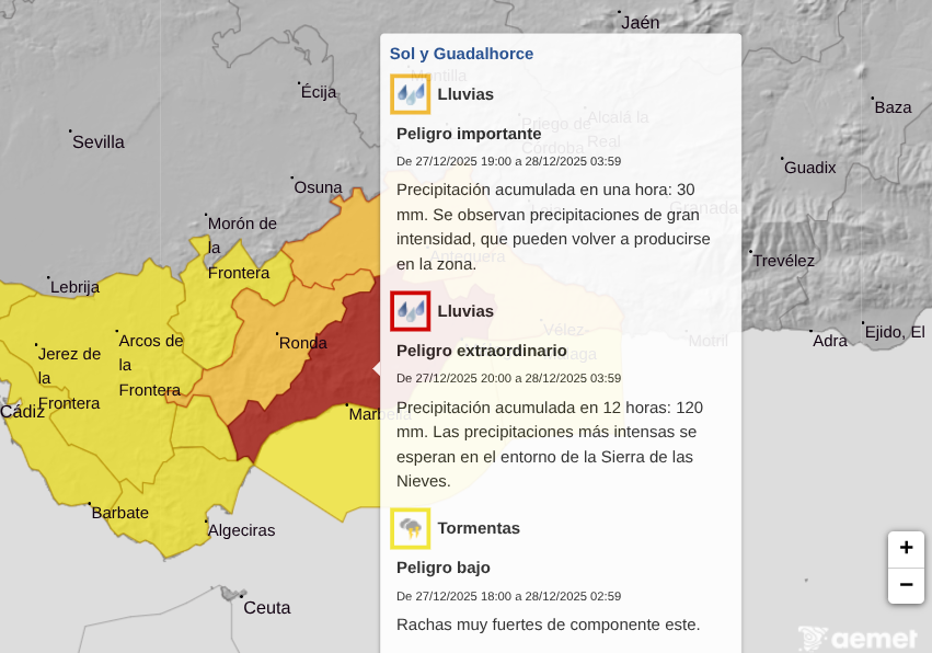 Aemet added that the most intense downpours will be expected in the area of the Sierra de las Nieves.