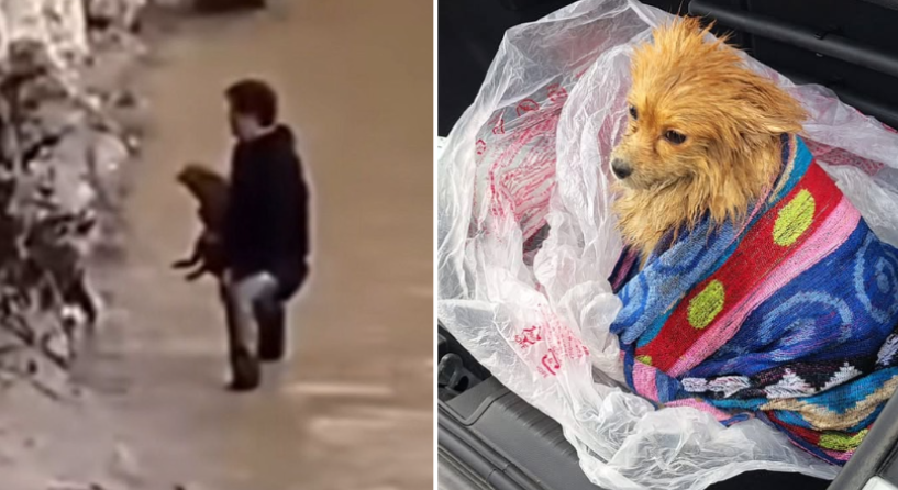 This is the moment a young man rescued a dog from the banks of a riverbed in Malaga on Sunday.