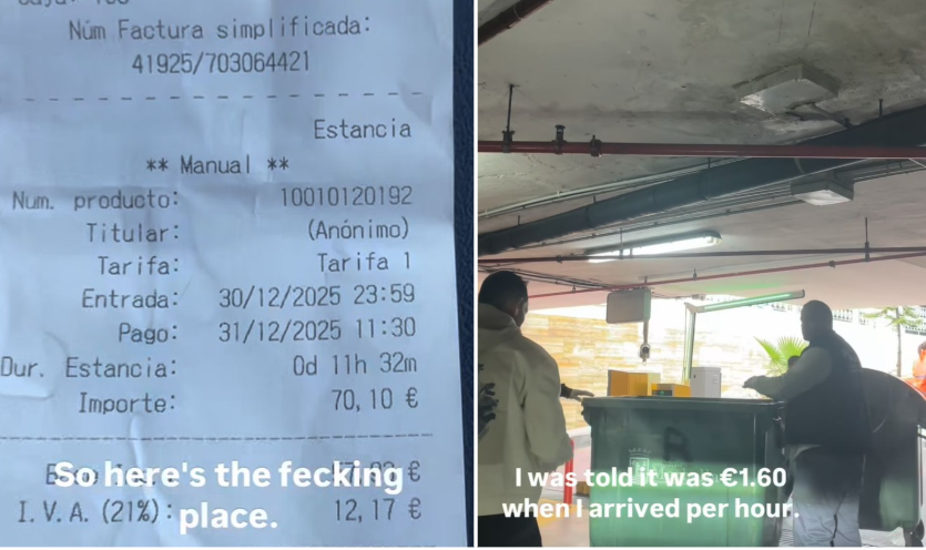 WATCH: Irish tourist is blocked from leaving Marbella car park by workers armed with bins after row over €70 bill