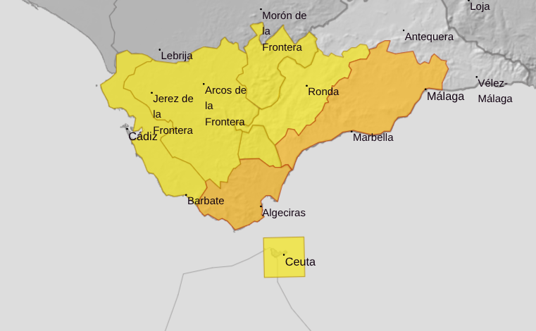 Weather alerts covering parts of Cadiz and Malaga have been upgraded from yellow to orange.