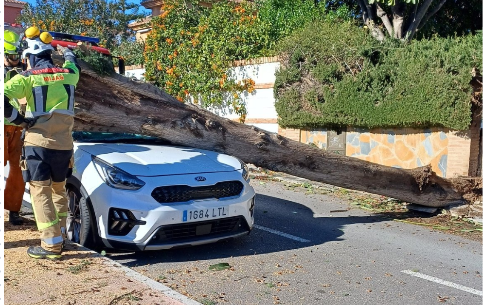 Pictures shared online from Mijas show trees uprooted, with one having crushed a car.