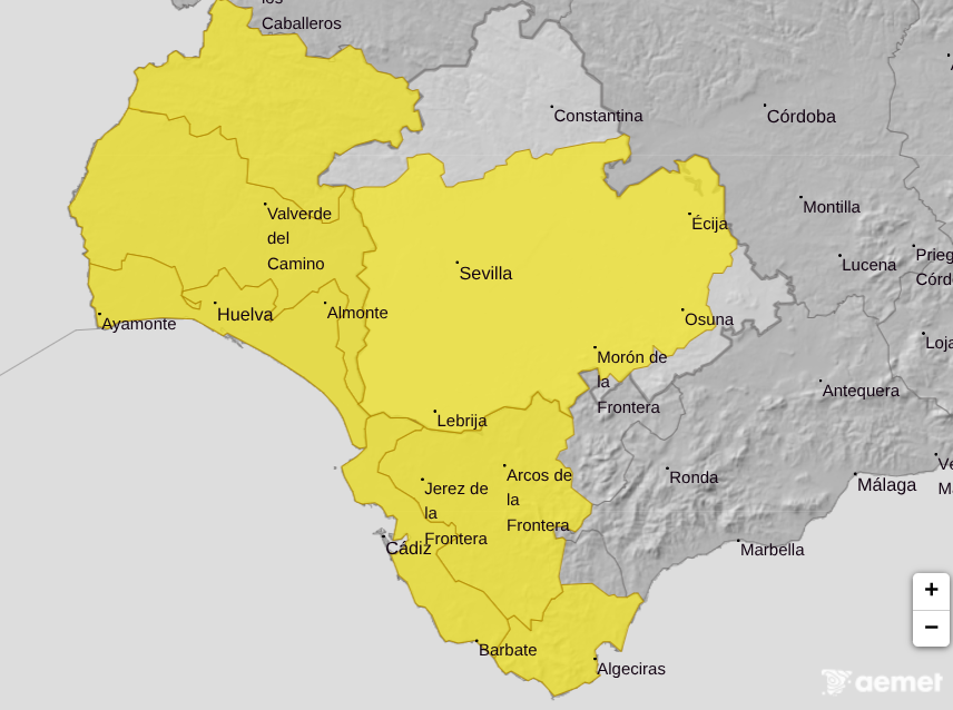 A series of weather alerts for heavy rain have been issued for western Andalucia on Tuesday.