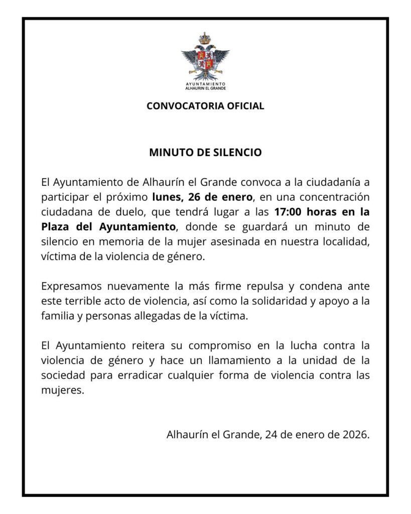 The town hall of Alhaurin el Grande has declared an official day of mourning on Monday, January 26, and has asked residents to gather for a minute’s silence at 5pm.