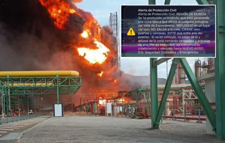 Residents in the region of Murcia were warned to stay indoors on Monday night after a Repsol refinery caught on fire.