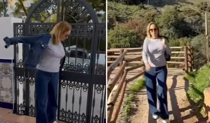 In the video, the Channel 4 presenter is seen strolling around Estepona in a light denim jacket, despite it being in the middle of January.