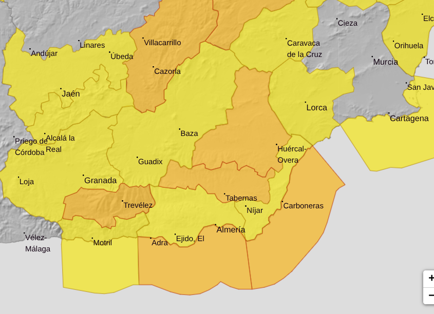 The warnings from state weather agency Aemet cover parts of Almeria, Granada and Jaen, with gusts to reach 100km/hr in the most exposed areas.