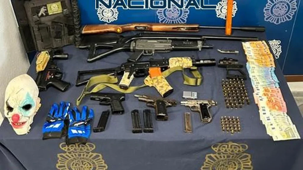 Early on Thursday morning, more than 50 officers took part in coordinated raids on two properties. During the searches, police seized two real handguns, ammunition, several replica weapons and a quantity of cash – as well as a creepy clown mask.
