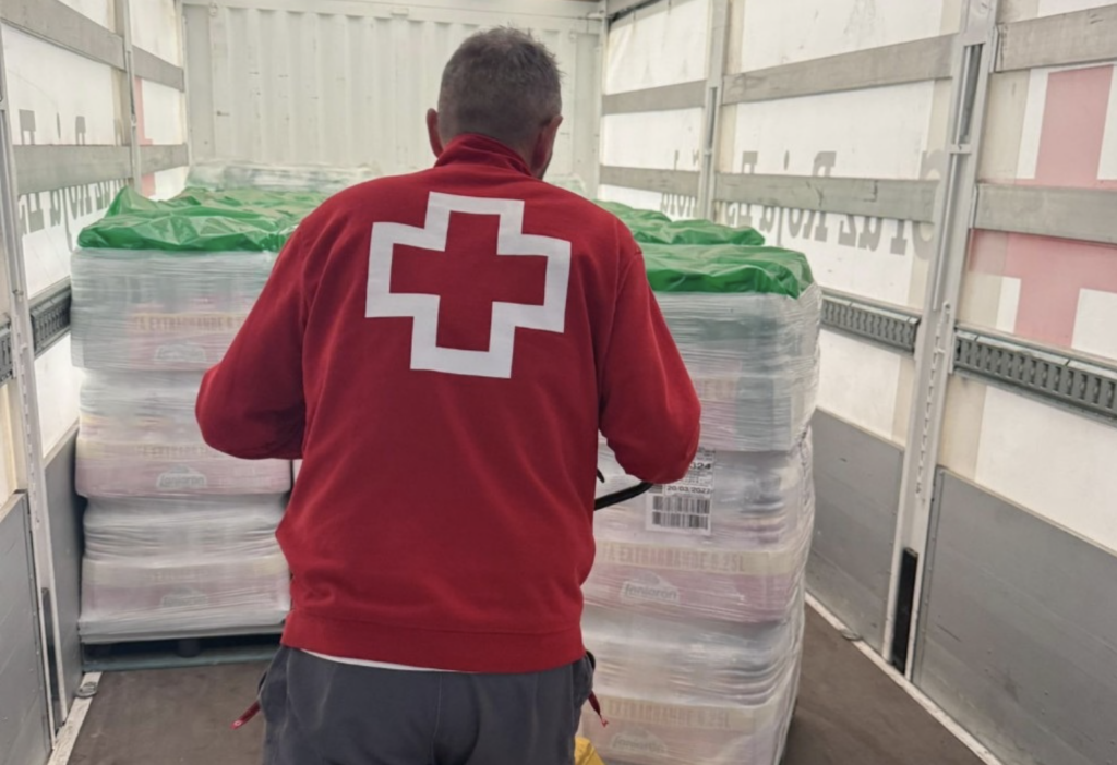 The Red Cross helps transport bottled water to residents in the Serrania de Ronda