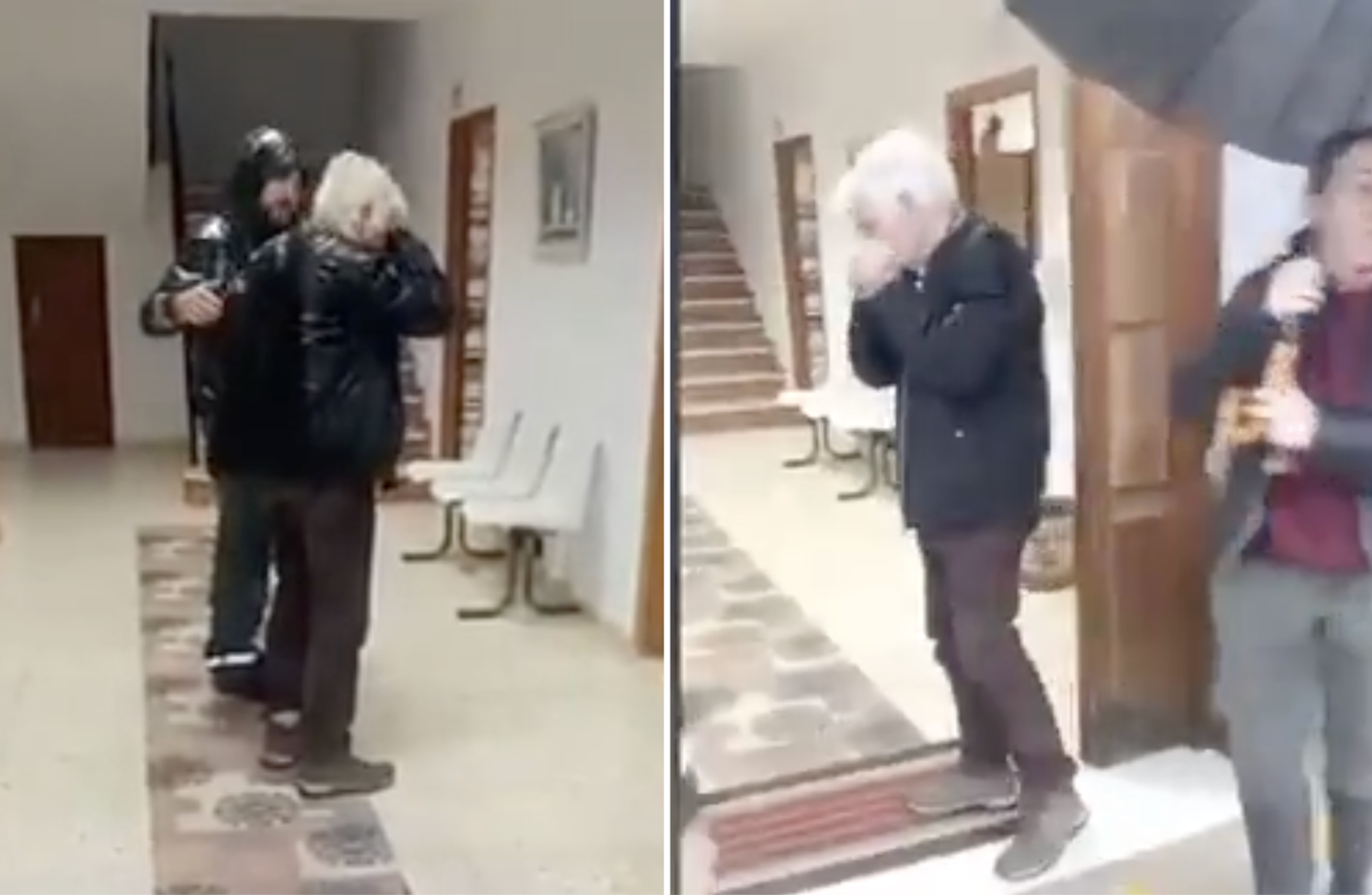One of the agents is then seen consoling him and putting his arm around him.