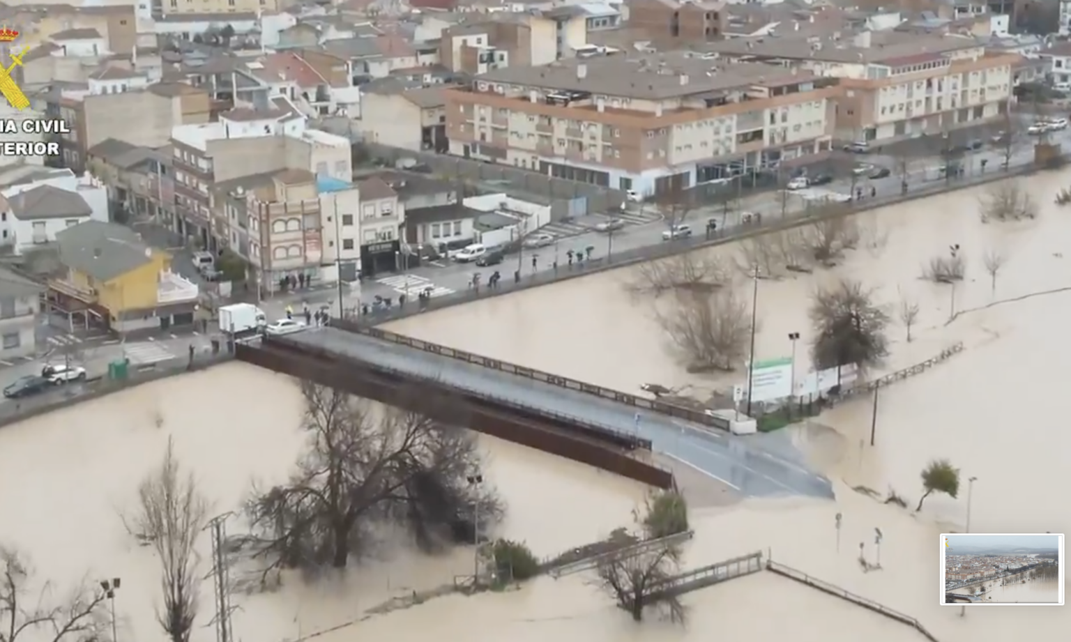 Multiple rivers have burst their banks in Granada, causing flooding across the province. One dramatic video was filmed from above Huetor Tajar and Venta de Santa Barbara by the Guardia Civil.