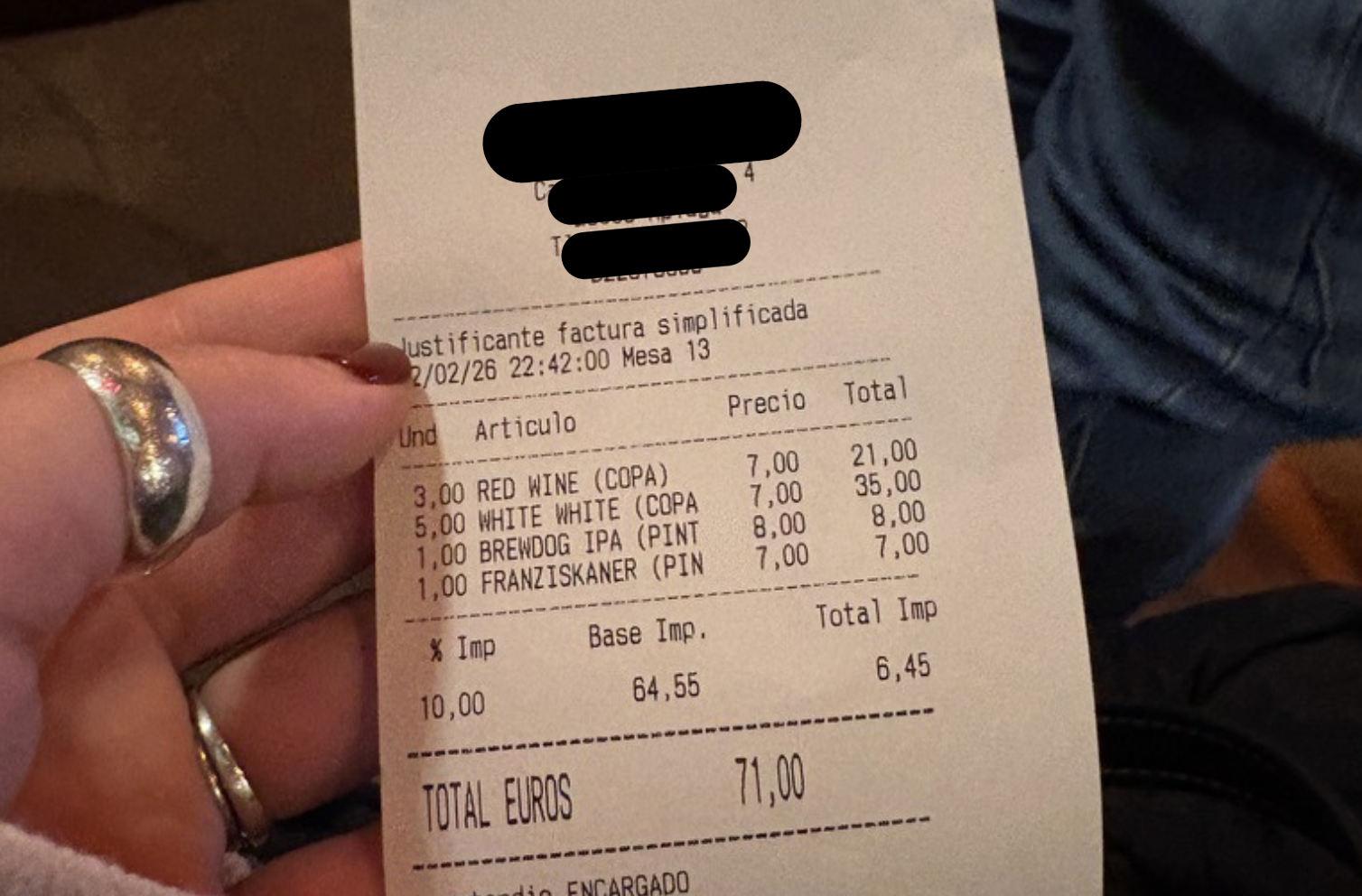 ‘We didn’t want to walk out and ruin the quiz vibes with our friend, but wow… I’ve lived in Spain long enough to know when the “expat tax” is being applied,’ Heidi said.