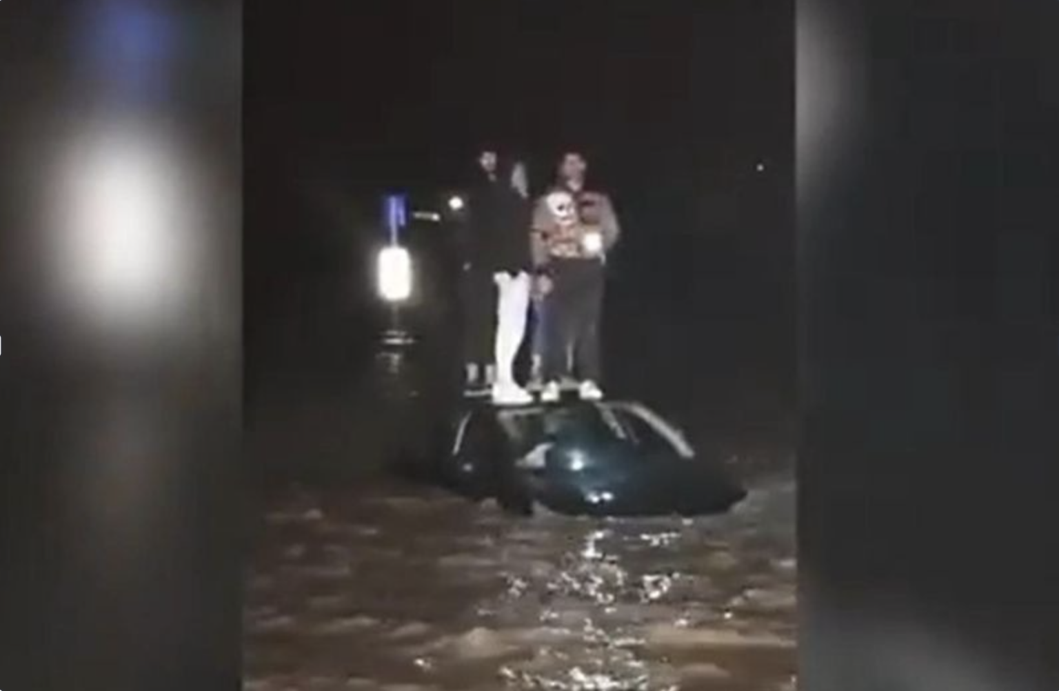 This is the dramatic moment a group of youngsters were rescued from the roof of a sinking car in flood-hit Granada on Thursday.