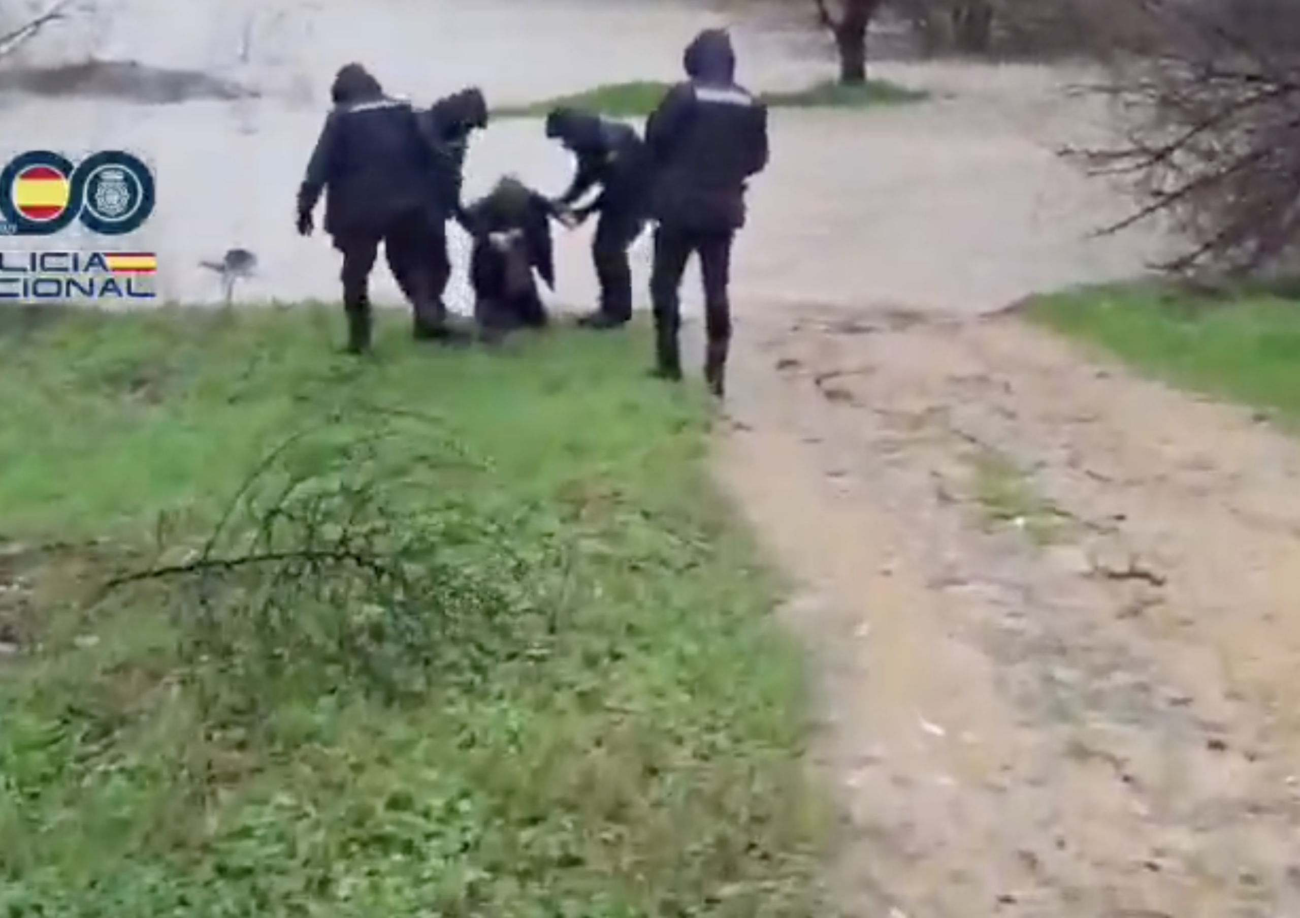 Tragedy was narrowly avoided when a group of Policia Nacional officers saved the local resident from being dragged downstream.