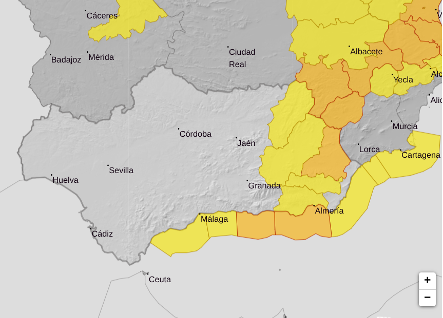 On Tuesday, rain continues to trigger yellow weather warnings in Cadiz and Jaen, while strengthening winds across western Andalucia have prompted orange alerts in Almeria and yellow warnings in Granada and Jaen. Rough seas are also affecting the Granada and Almería coastlines.