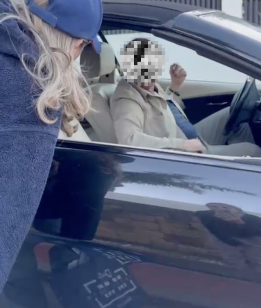 But in an unedited version of the video, seen by this newspaper, the episode is actually started by a British man, who pulls up in his BMW to tell the feeder to stop.