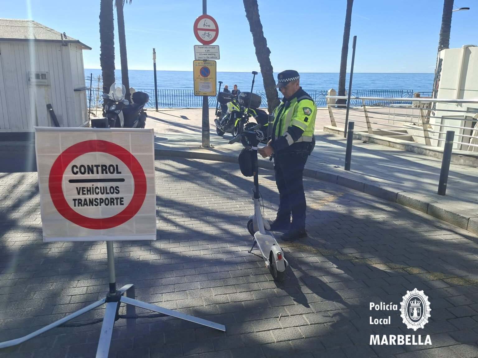 Marbella police have this week launched an inspection campaign of e-scooters and bikes, including along the beach promenade.