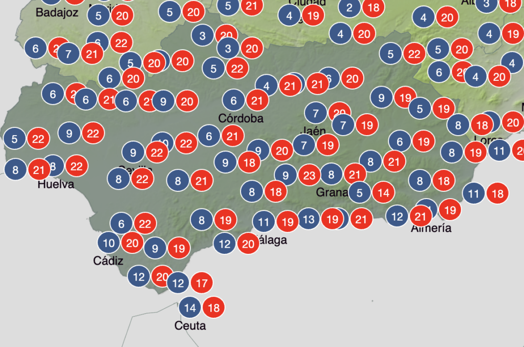 Highs of between 19C and 22C are also expected in the provinces of Jaen and Cordoba.