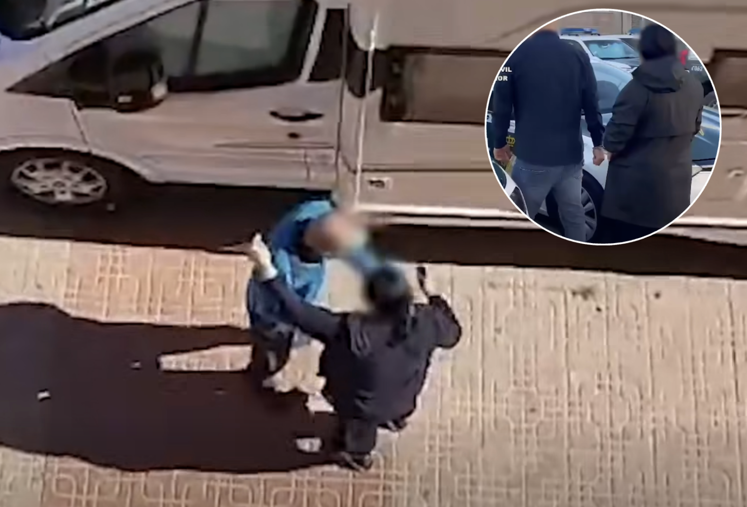 Video footage shared by the Guardia Civil shows a woman hugging a frail, elderly man in the middle of the street.