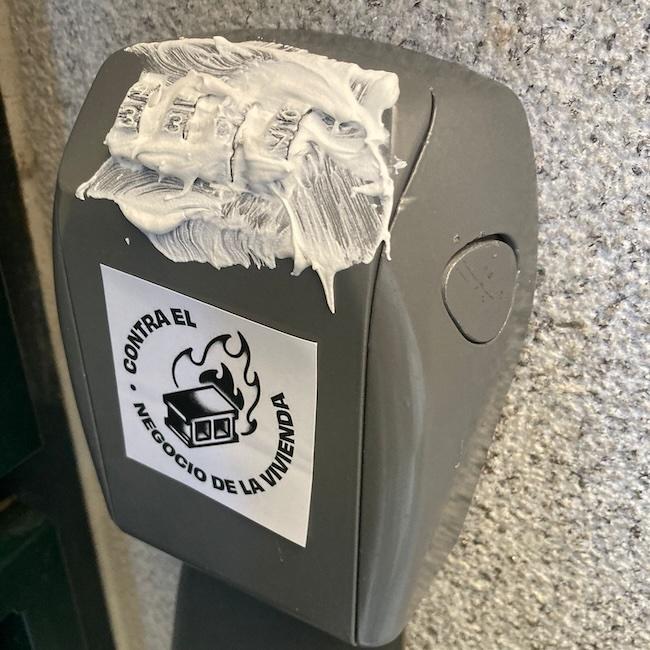 The devices – typically fixed to doorways and façades to allow self-check-in for visitors – were covered in a superglue-like substance and rendered unusable before being covered with stickers reading: ‘Against the housing business.’