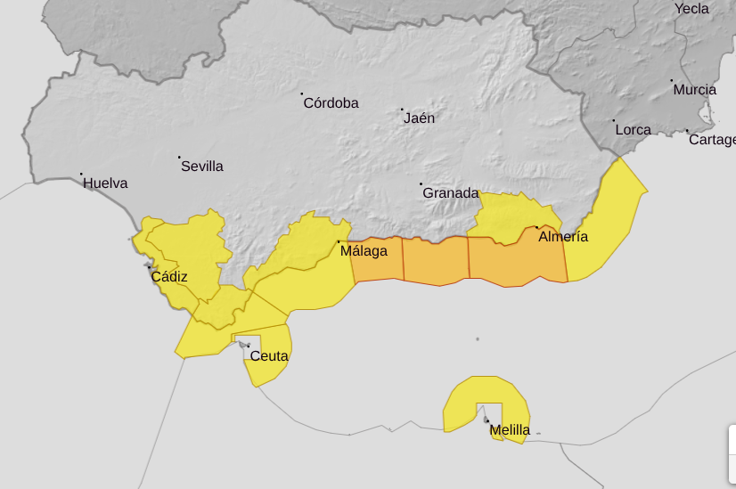 The four provinces on alert are Cadiz, Malaga (Costa del Sol and Axarquia), Granada and Almeria.