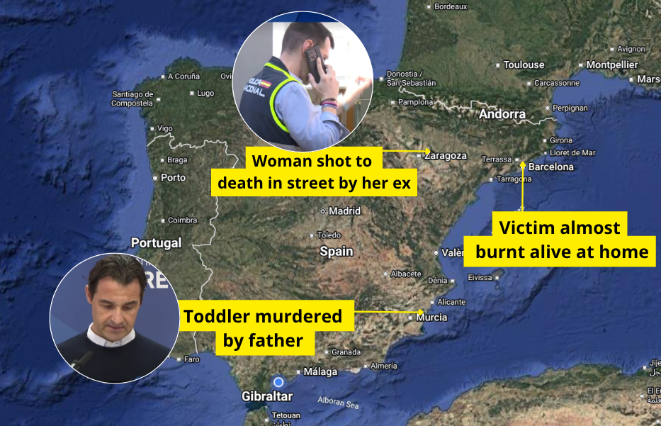 Spain has been rocked by a series of brutal domestic violence incidents in less than 24 hours, leaving two people dead – including a three-year-old girl – and another woman narrowly escaping an attempted killing.