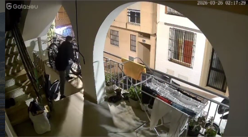 Footage shared online shows a young man walking slowly up the stairs of a property in Las Lagunas at 2.17am on Wednesday.