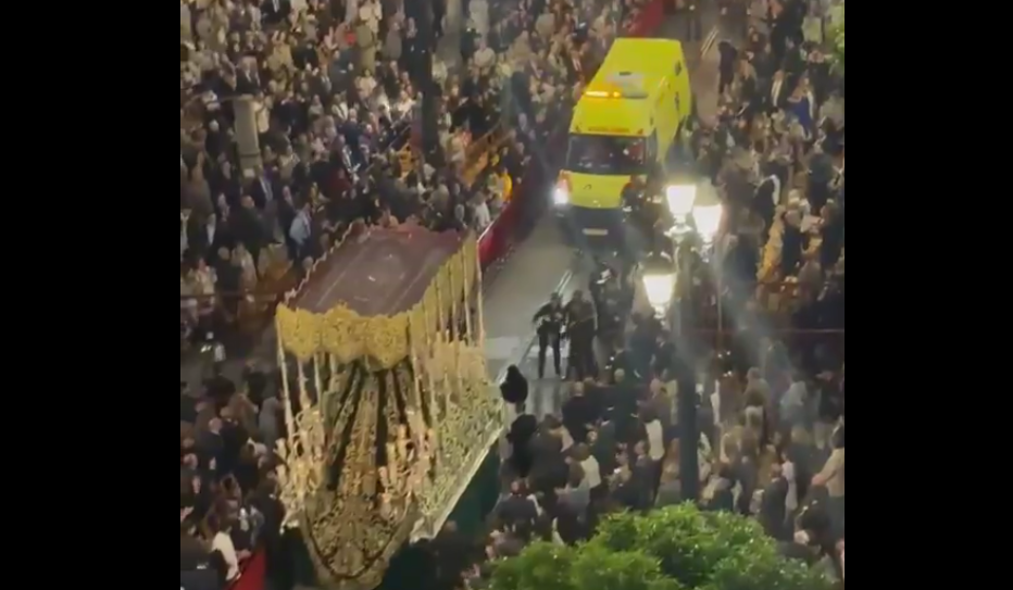 Both processions were forced to stop as the ambulance crossed the avenue en route to Plaza Nueva.