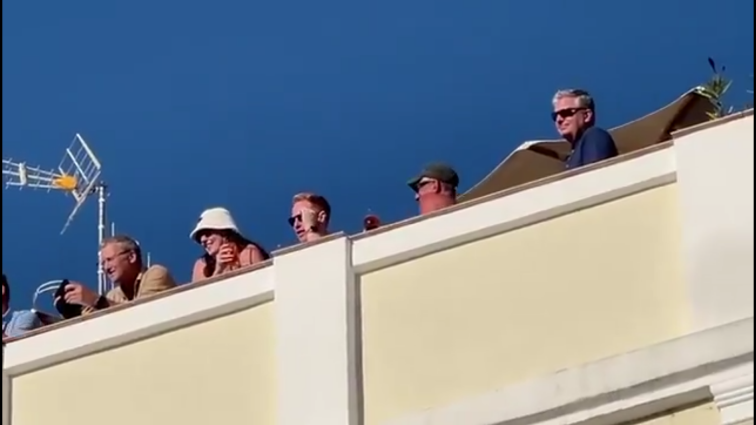 Footage shared on X showed around half a dozen holidaymakers on a hotel rooftop enjoying drinks while donning casual attire during near 30C heat – with some of the men topless.