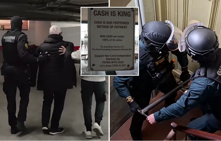 Footage shared by the Guardia Civil shows an Irish tavern being raided in Fuengirola.
