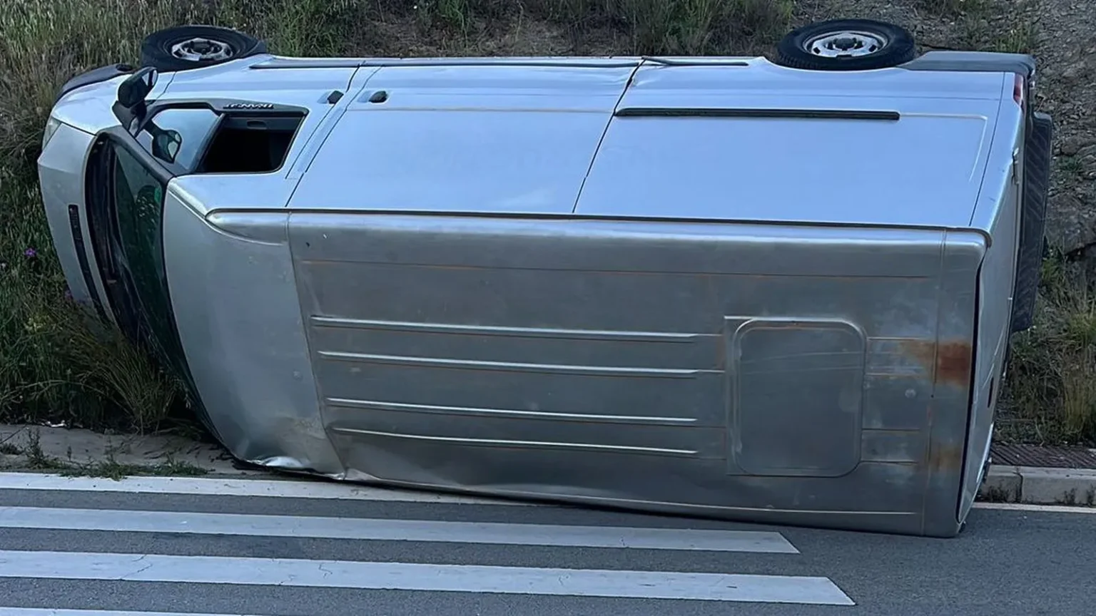 For reasons still under investigation, the driver lost control on a steep stretch of road, mounted the curb, slammed into an embankment and overturned the vehicle.