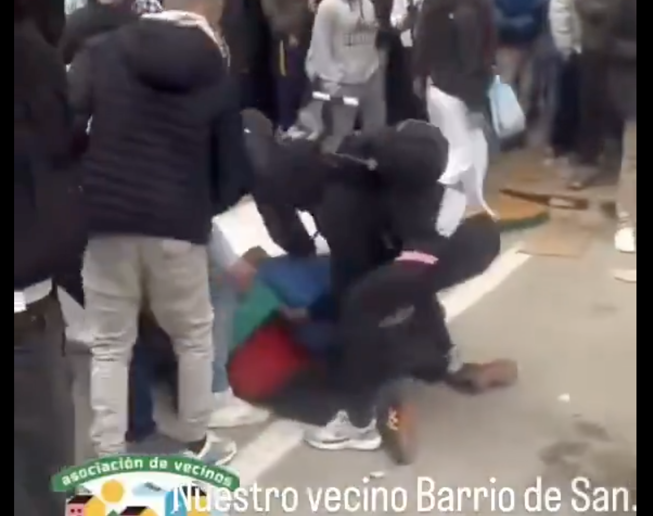 This is the moment chaos erupted outside a centre issuing documents for Spain’s migrant regularisation process in Murcia on Tuesday.