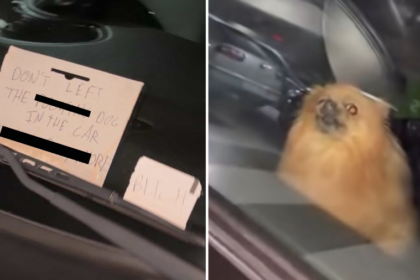 Photos shared online showed a little pomeranian in the back seat of…