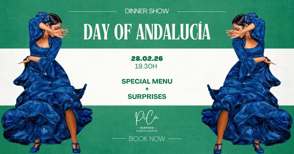 El viernes 28 de febrero a las 7:30 PM, PiCú Banús te invita a vivir un espectáculo especial de flamenco en vivo, creado exclusivamente para esta icónica celebración andaluza.